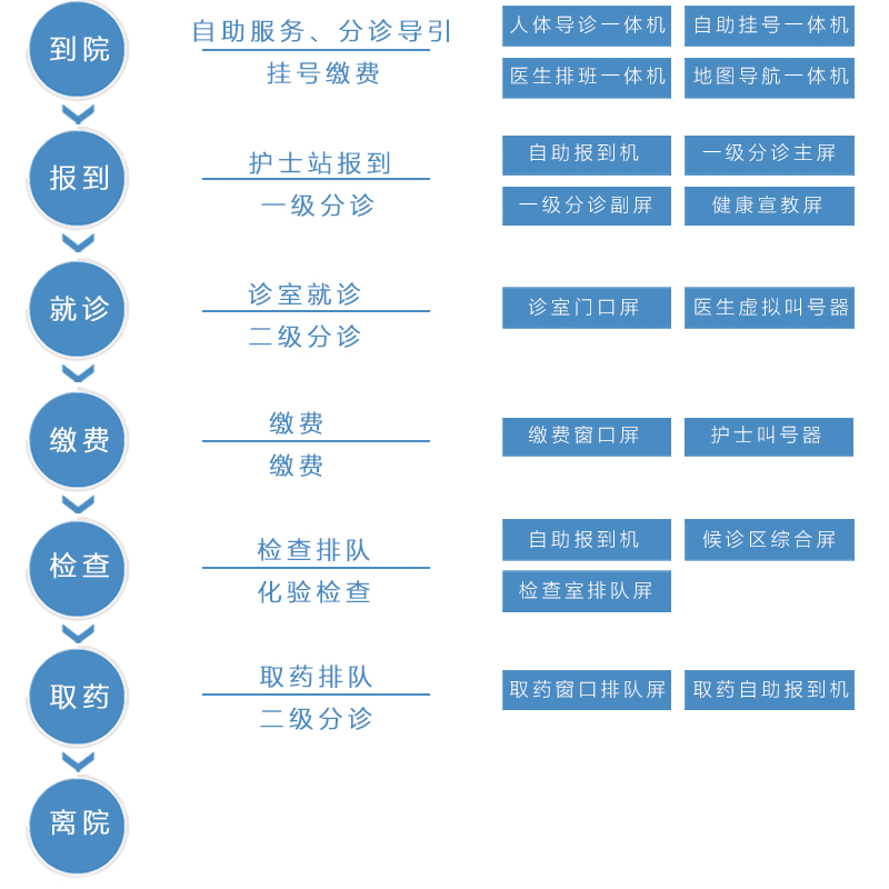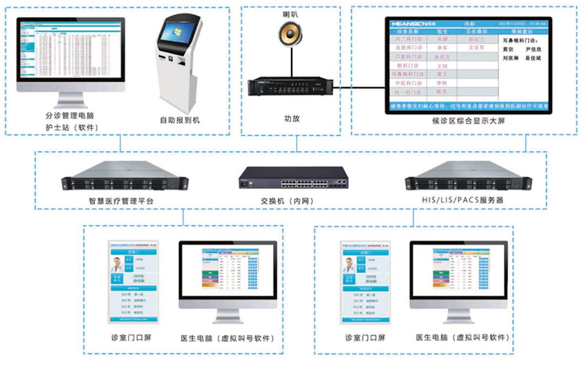 智慧醫(yī)療排隊叫號系統(tǒng),包括門診排隊叫號系統(tǒng)、藥房排隊叫號系統(tǒng)、醫(yī)技排隊叫號系統(tǒng)、體檢中心排隊叫號系統(tǒng)、預防接種中心排隊叫號系統(tǒng)等產品,在結合醫(yī)院現狀的情況下,結合醫(yī)院實際需求定制開發(fā)的一整套醫(yī)院排隊解決方案,主要用途是幫助醫(yī)院提高服務效率,減少患者排隊等候時間,在與HIS/PACS/LIS等醫(yī)院管理系統(tǒng)對接的情況下,做到精準的患者分流。
